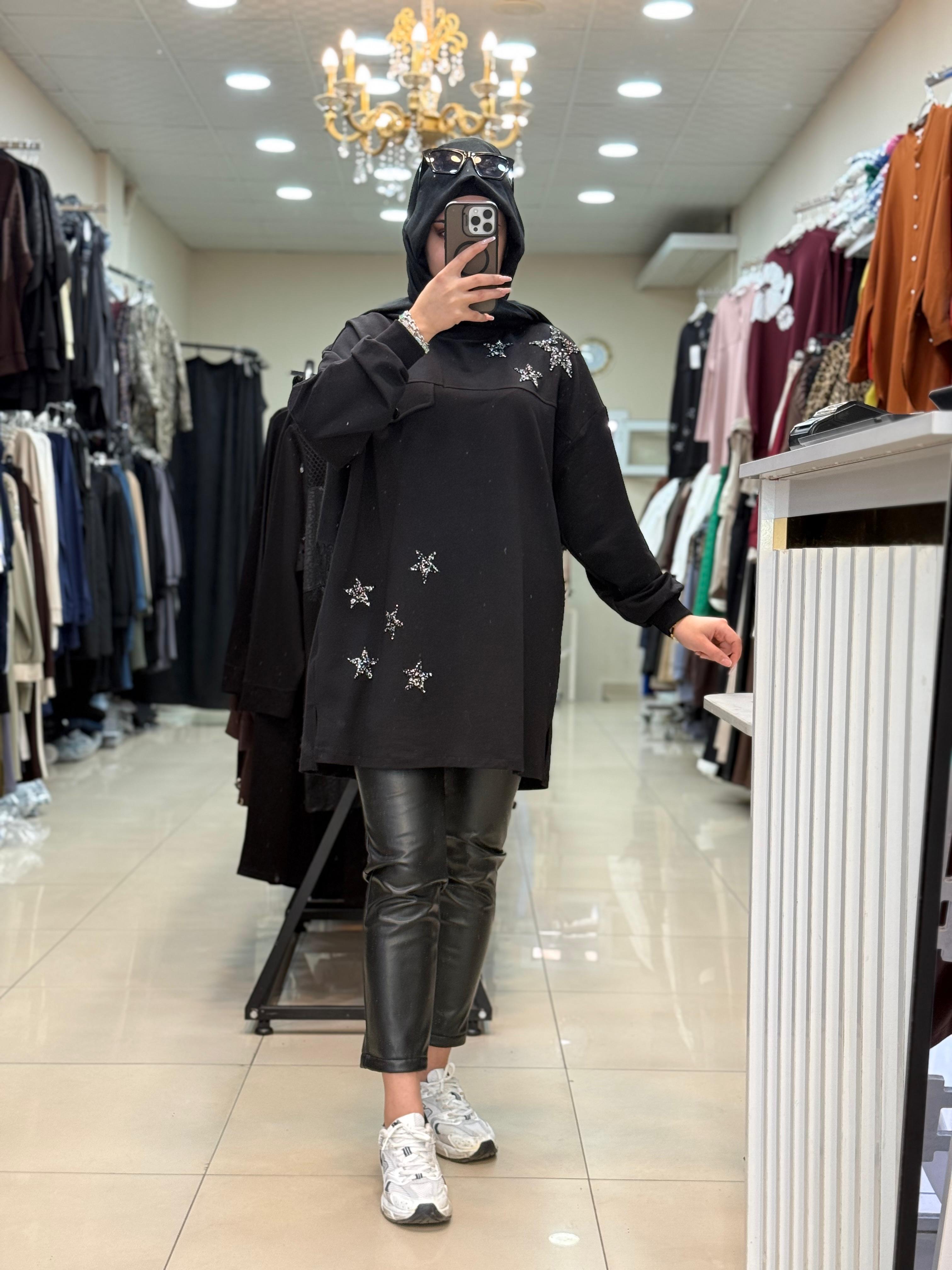 10736 YILDIZ CEP DETAYLI SWEAT Siyah