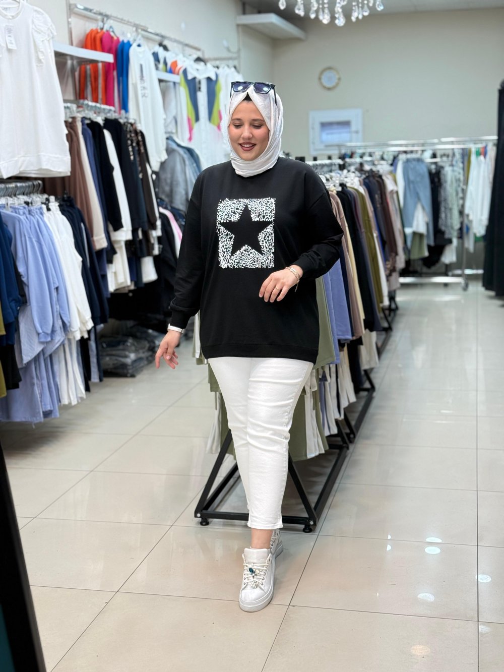 3067 YILDIZ BASKILI SWEATSHIRT Siyah