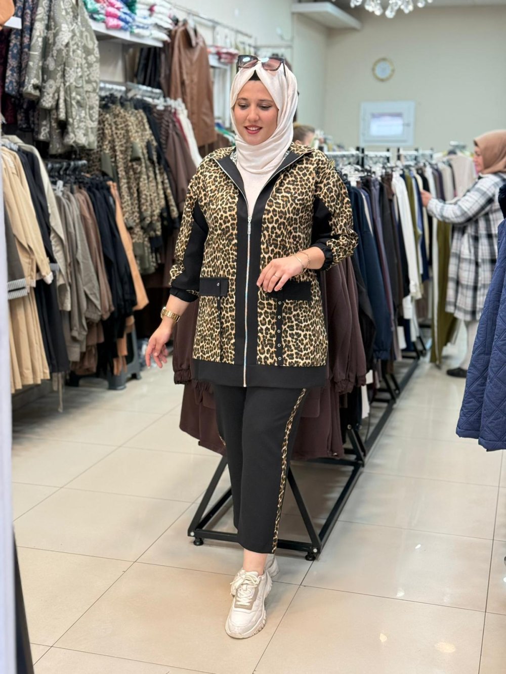 9768 LEOPAR DETAYLI TAKIM Siyah