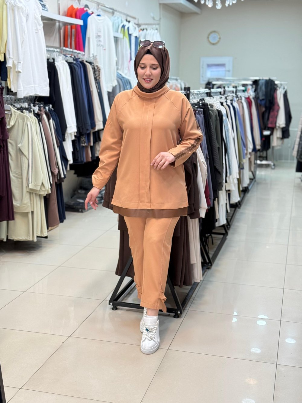 9771 DERİ DETAYLI DOUBLE TAKIM Camel