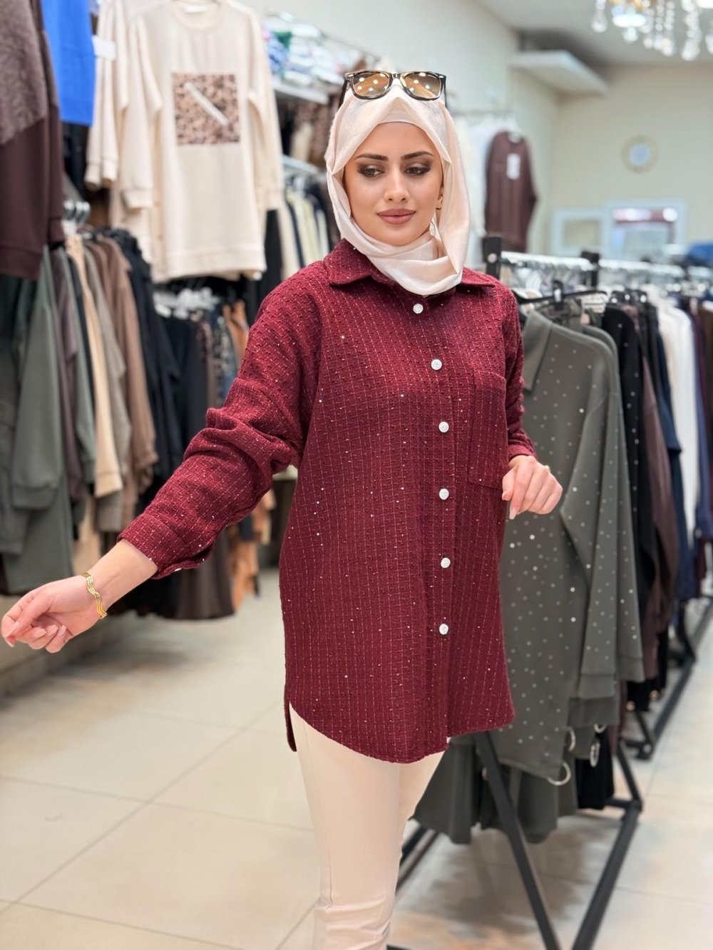 Pırlanta Chanel Gömlek Bordo