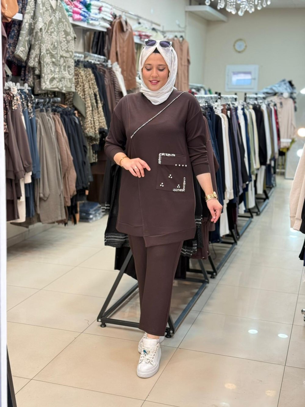 TAŞ DETAYLI OYSHO TAKIM Kahverengi